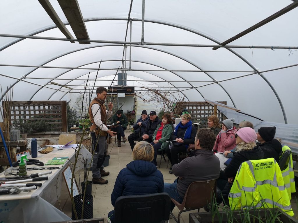 The workshop took place in the IRD DUhallow social farming orchard and in one of the spacious polytunnels on site, which are conveniently located beside each other on the James O’ Keefe Institute Demesne.