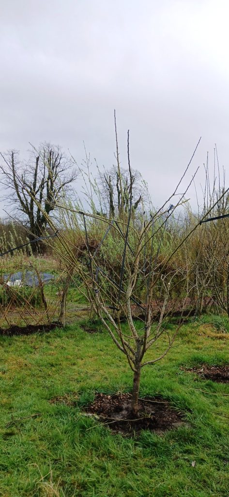 Now this grafting – although very useful – quite upsets the natural growing pattern of the tree, and some careful pruning therapy in subsequent years is required to help the tree grow to a natural shape, which for most fruit trees is a central leader form, somewhat like a classic Christmas tree. Now, again, for our purposes we may want the tree to grow in unnatural forms so as to increase the fruit density, to keep the tree branches low and reachable or to grow in two-dimensions only such as with fan or espallier forms and thereby take advantage of the warmth of a south or west facing wall.